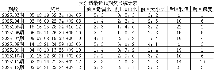 综合分析,大乐透第25113期前区012路比参考0:2:3。