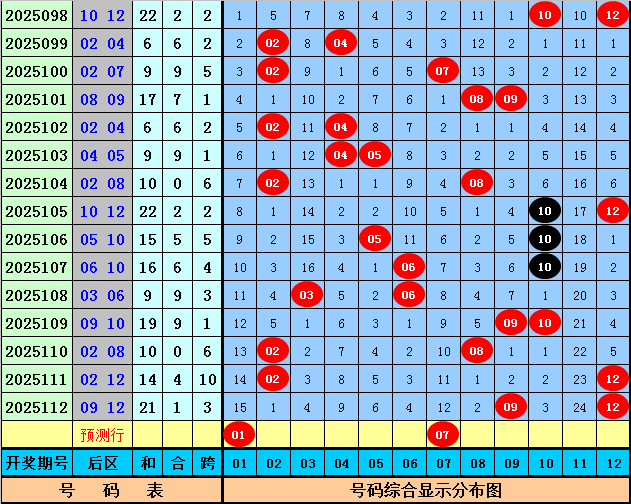 后区分析:上期后区开出奖号09、12,为全大、一奇一偶组合。