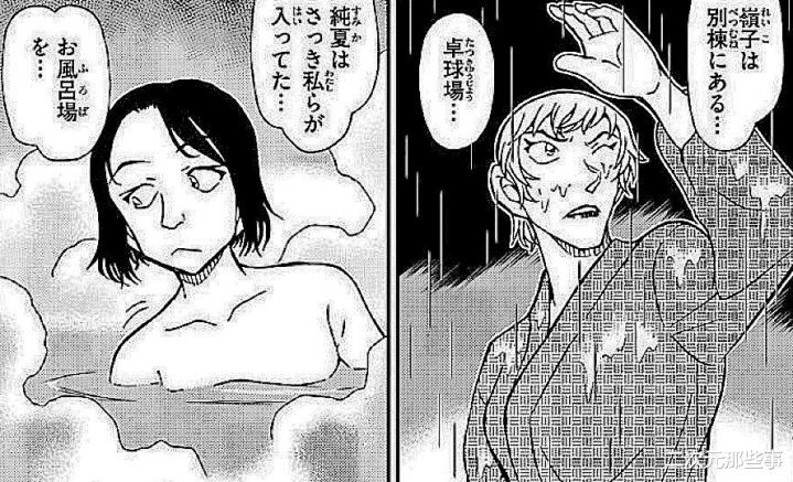 之后画面转到了四个女龙套角色的闲聊,这个四个女角色泡完澡后,其中一个人发现自己的订婚戒指不见了,所以四人决定前往不同的地方去找。与此同时,萩原千速、小兰和小忍在更衣室也听到了她们的对话。