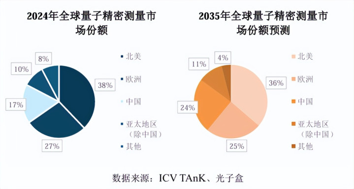 中国企业在量子精密测量领域提升较快,在全球的市场份额将由2024年的17%增长至24%。