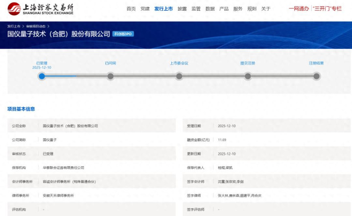 据上海证券交易所官网显示,12月10日,国仪量子技术(合肥)股份有限公司(下文简称“国仪量子”)递交科创板IPO申请获受理。